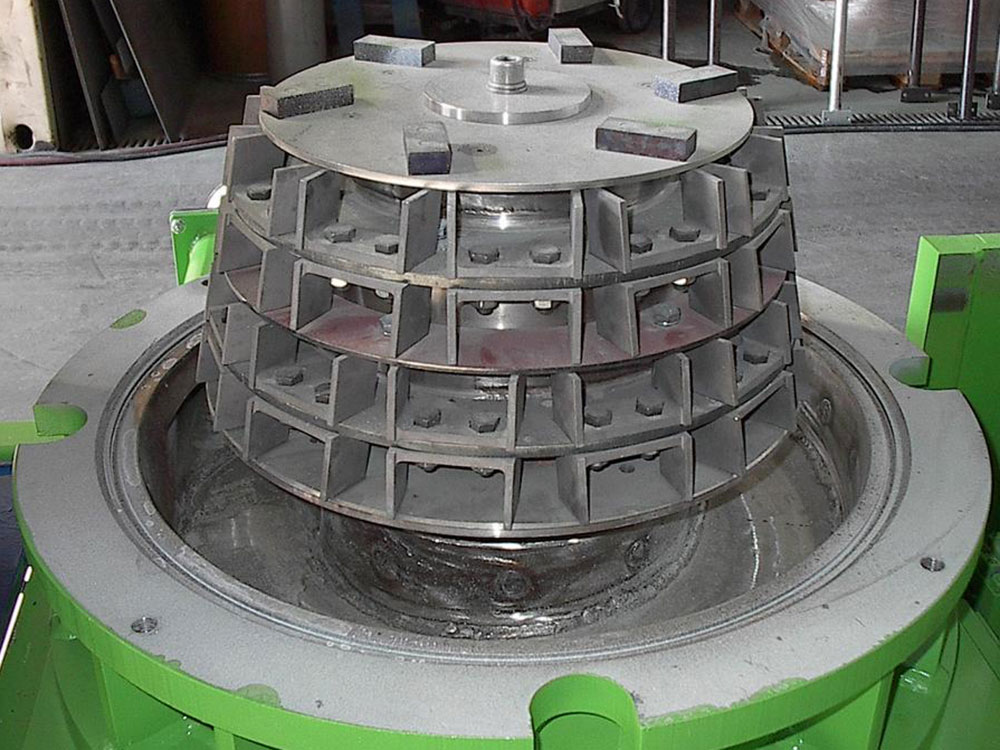 Fließbett-Gegenstrahlmühle (MFG): für extrem feine Pulverqualitäten (< 10 µm) im Bereich Dünnschicht-Pulverlacke.